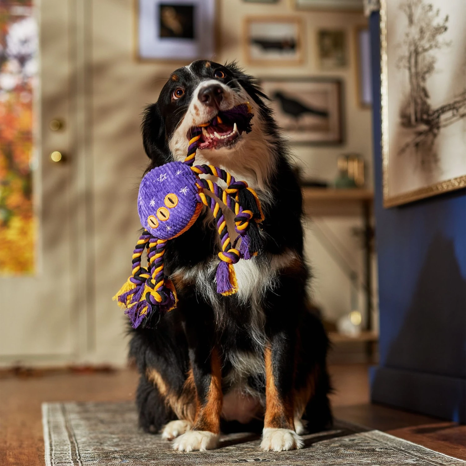 - This magical spider plush combines two of your pup’s favorite ways to play into one toy.
