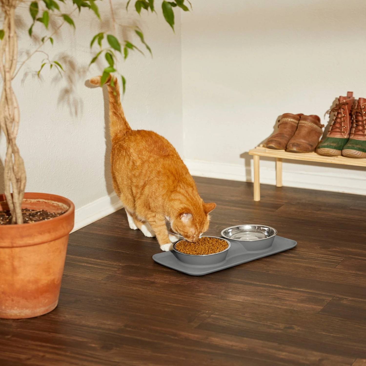 - Keeps your pet’s food and water in one convenient, easy-to-clean place.