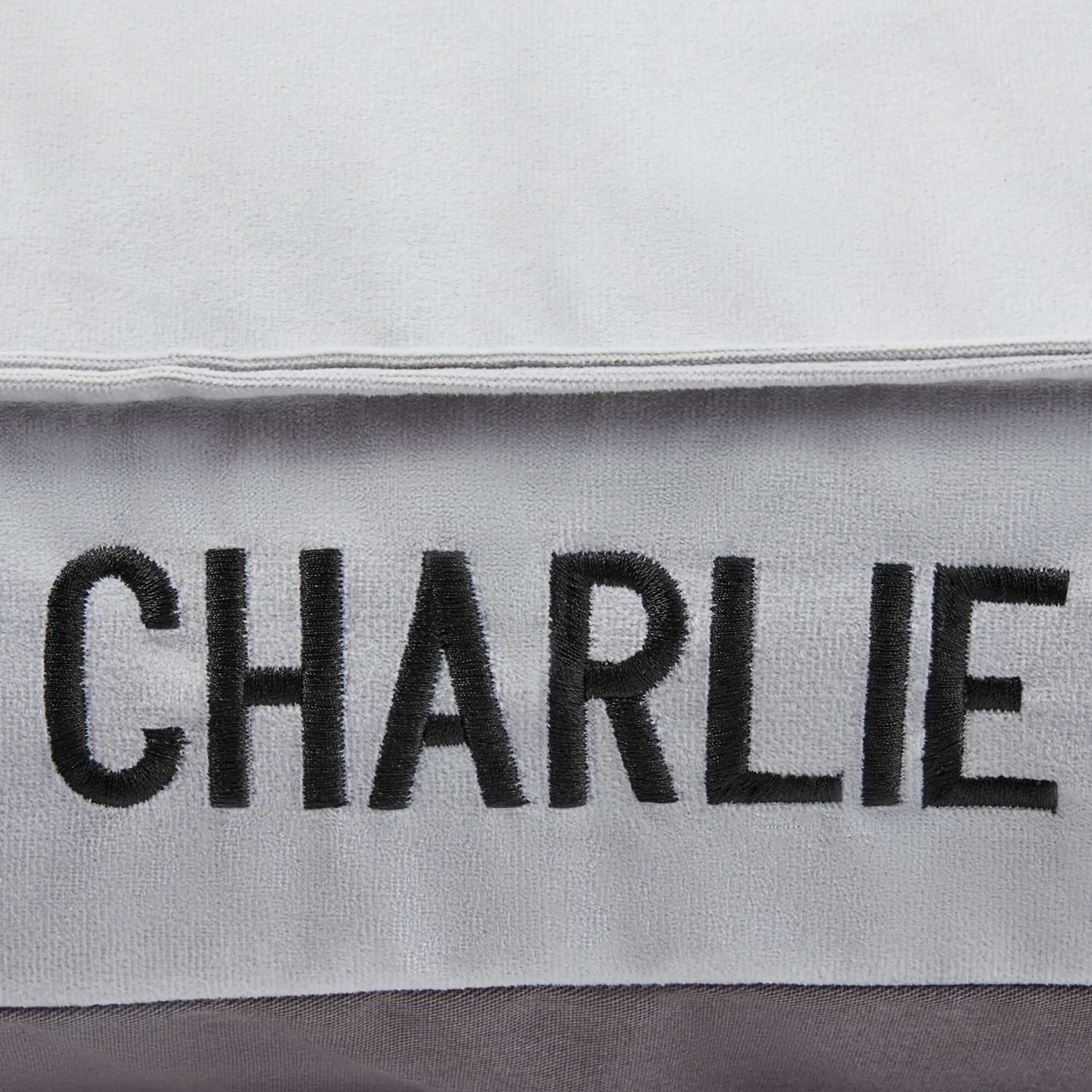 - Back bolster-style bed, customizable with up to 10 1-inch characters, perfect for their name.