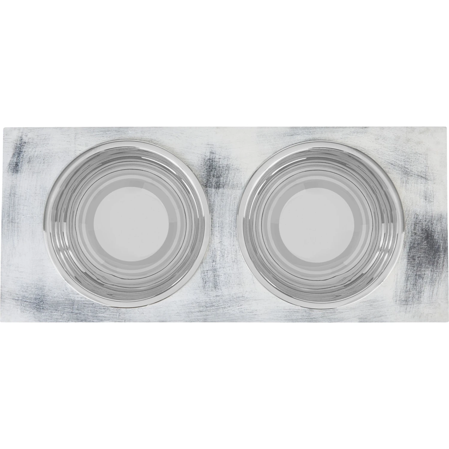 Frisco Ceramic Dog & Cat Double Diner With Elevated Wood Stand